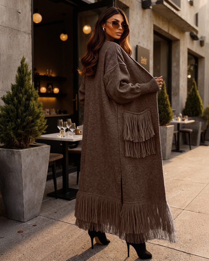 Zuza Choco Cardigan75,00 € Long cardigan with impressive fringe details on the hem and pockets. Its relaxed oversized fit ensures comfort and effortless style, while the full length makes it perfect for layering. Size Κάντε μία επιλογήOne SizeΕκκαθάριση Zuza Choco Cardigan ποσότητα Προσθήκη στο καλάθι Add to wishlistAdd to compare Κωδικός προϊόντος: CA00006 Κατηγορία: Cardigans Share this product Περιγραφή Περιγραφή Length: 127 cm Width: 57 cm Sleeve length: 50 cm Composition: 73% PA, 24% PL, 3% WOOL